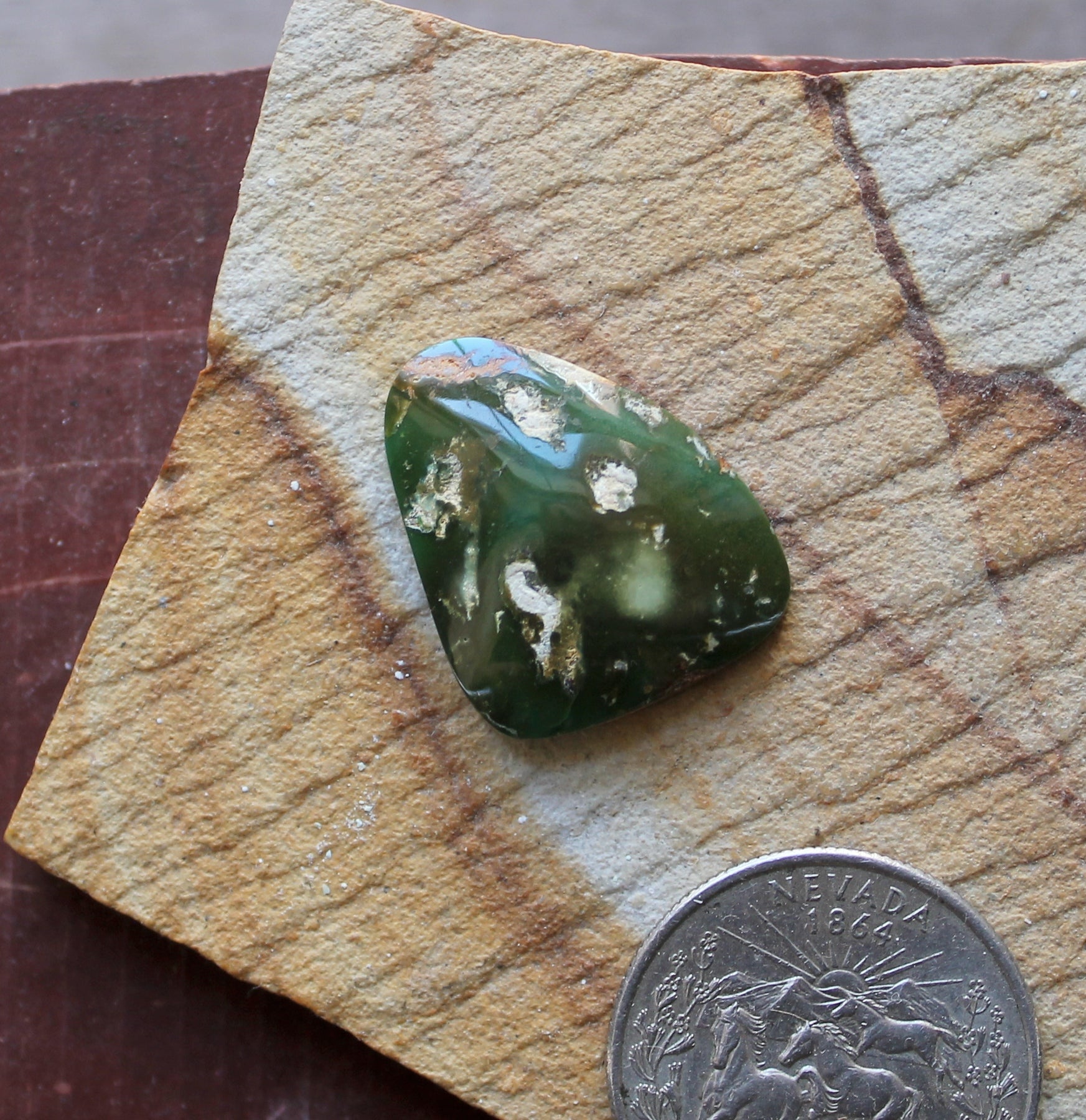 Description: A turquoise vein stone discovered at Stone Mountain Mine fashioned into a dark green turquoise cabochon. This turquoise cabochon is untreated.