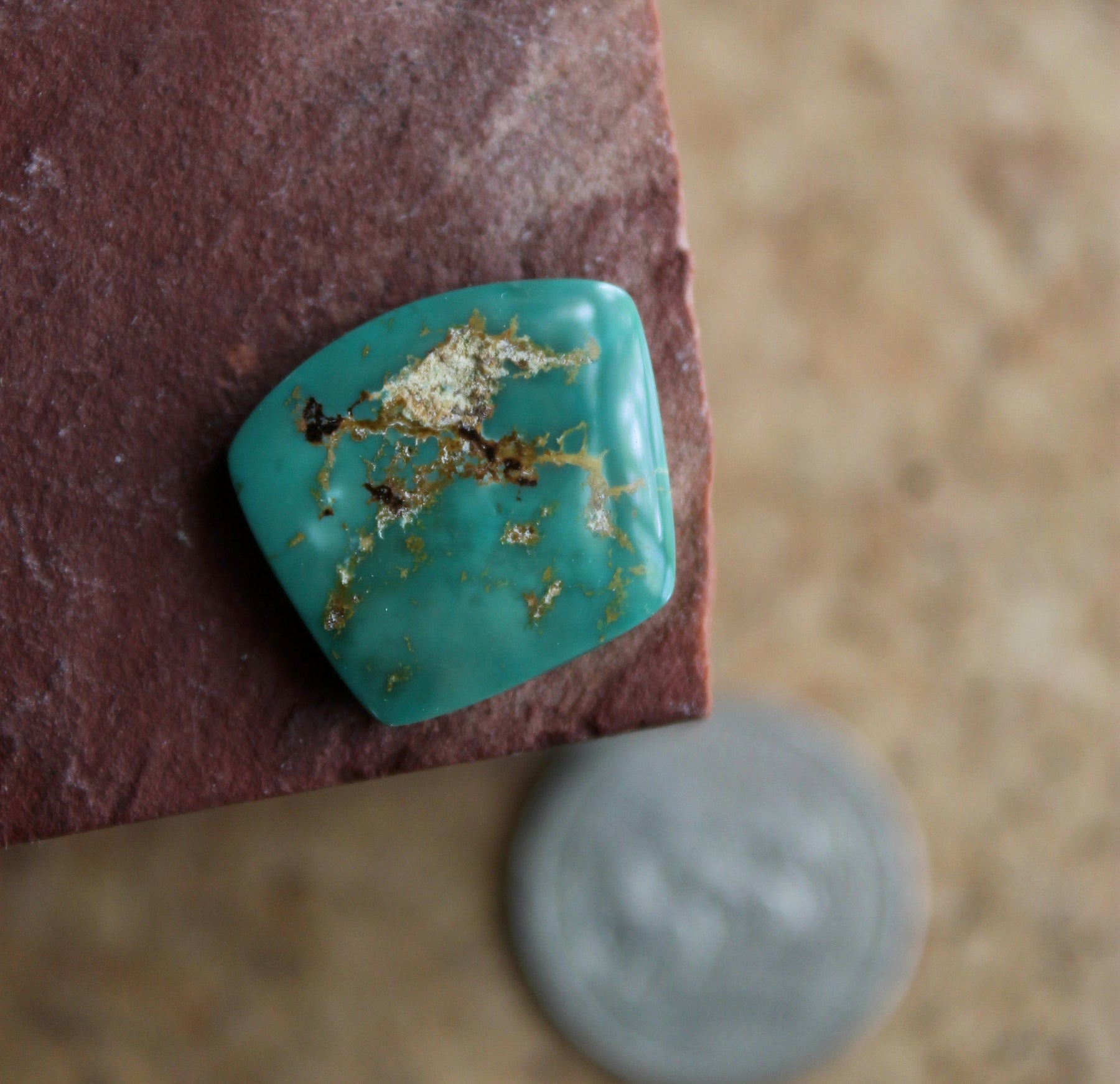 Description: A turquoise vein stone from Stone Mountain Mine fashioned into a teal green turquoise cabochon. All the turquoise we sell is natural and unaltered.