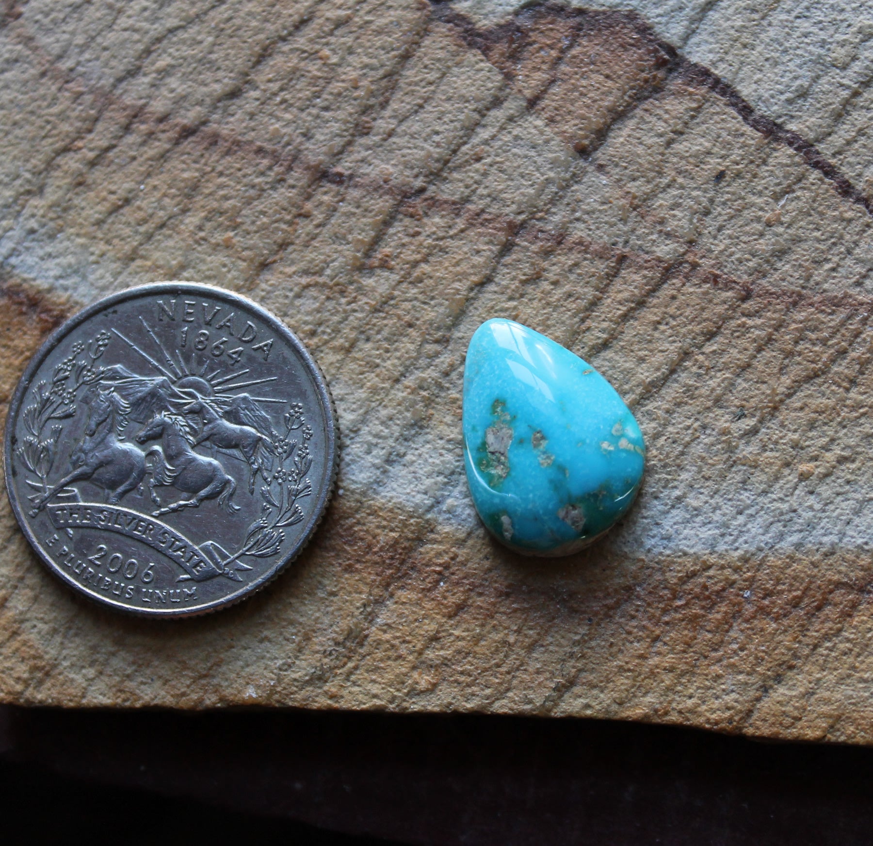 Description: A turquoise vein stone discovered at Stone Mountain Mine fashioned into a deep blue turquoise cabochon.